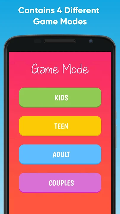 ✔ 4 種不同的遊戲模式 - 兒童、青少年、成人、情侶(18 歲以上)。注意:成人和情侶模式只有在您年滿 18 歲的情況下才能玩,因為它包含骯髒的膽量。