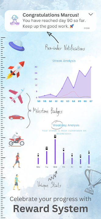One stop app for your addiction recovery and daily motivation. Now you can overcome bad habits & achieve life goals by Battling with your friends, maintaining Journal, interacting with Community, receiving interesting Stats, Articles motivational Wallpapers & Notifications.