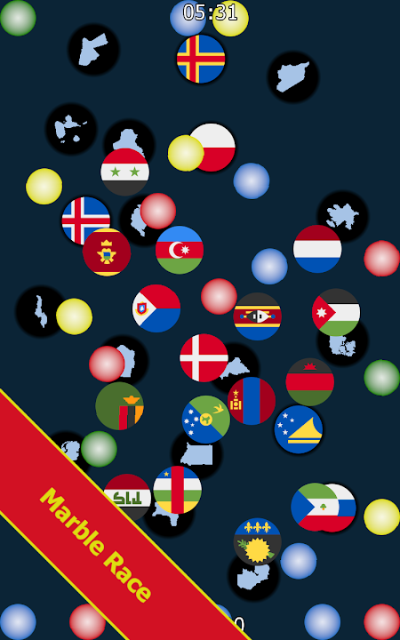 The game 'Marble Race with Country Balls' tests your dexterity and your knowledge of geography at the same time. Try to direct the country balls to the correct maps. Which is not so easy, since you can only control the flag balls by moving the device. The colored marbles bounce everywhere on the racing board. This is how they prevent you from having an easy job.
