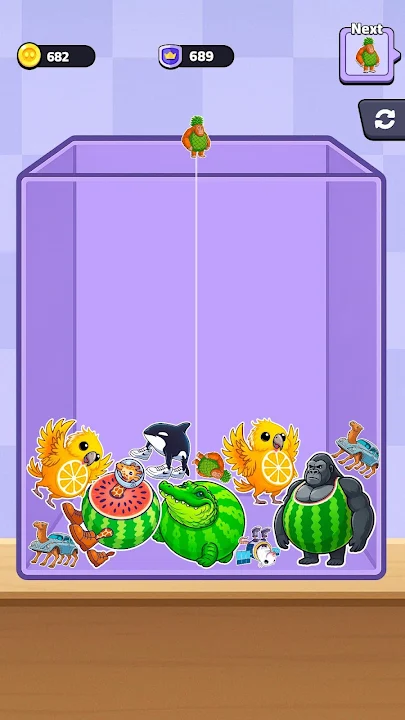 🏆 進度 – 在多輪合併掉落解謎遊戲中賺取金幣、解鎖皮膚並創下紀錄。