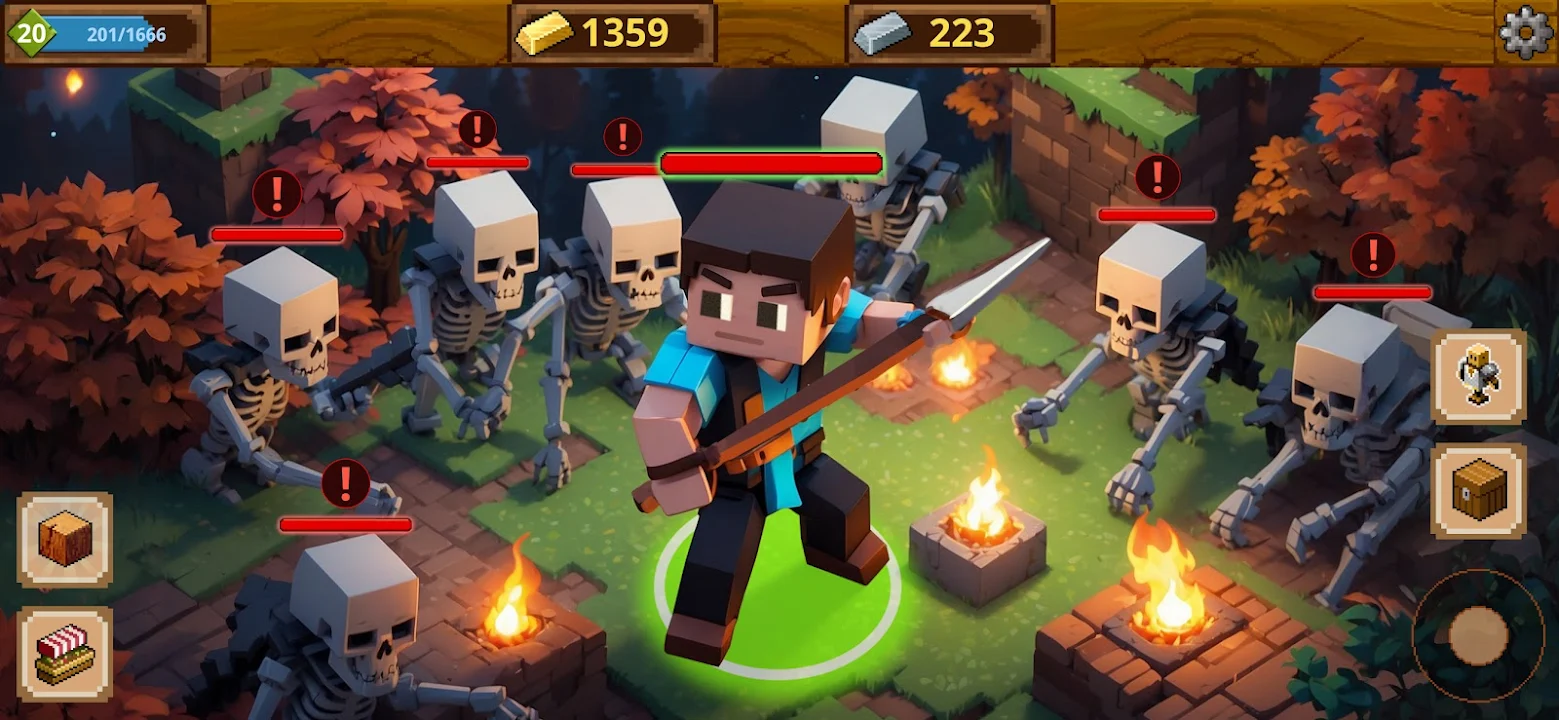 探索世界是生存和进阶的关键。您需要重建桥梁并击败boss来解锁这个方块宇宙中的新区域。你想穿越未知的土地、修复建筑物还是勇敢地探索黑暗洞穴的深处?每个区域都充满了资源、隐藏的宝藏和任务。有多种环境可供探索,例如像素城市废墟和森林,您可以探索并收集资源来帮助您成长。