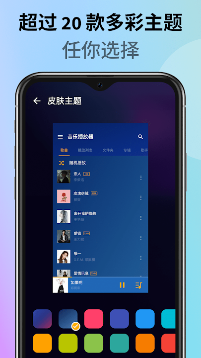 免费的离线音乐播放器 & MP3 播放器!有功能强大的均衡器,自动匹配歌词,20种主题皮肤,编辑标签功能。
