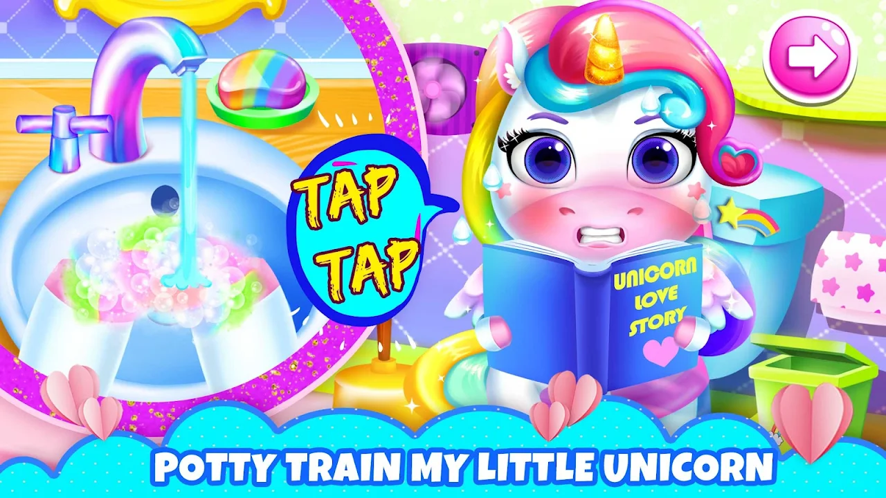 - Your unique unicorn needs to SLEEP & GO TO THE BATHROOM. Play the lullaby before the unicorn falls asleep. Pick up the cutest toy for Kimi to hold. And Kimi will dream about the favorite toy. Teach Kimi to go to the bathroom in the right moves, especially washing hands.