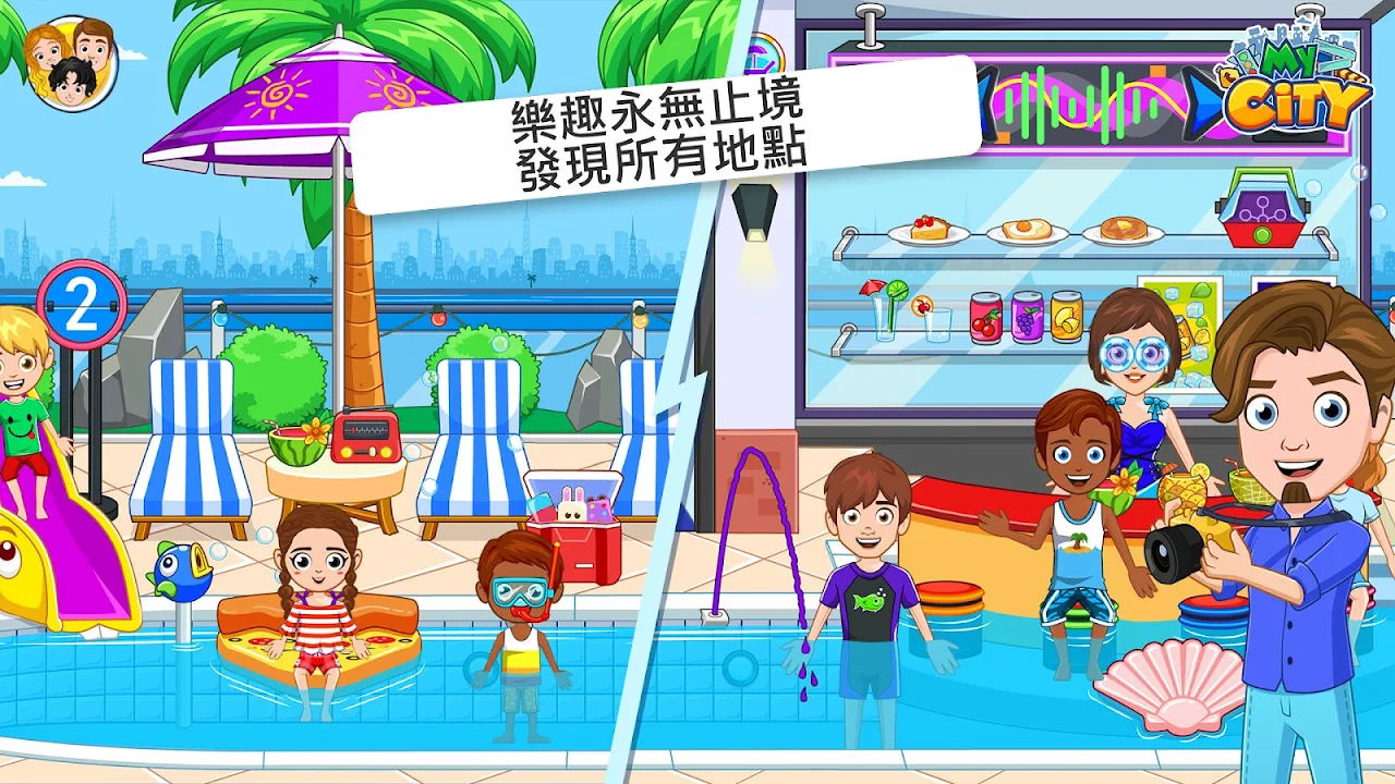 - 關聯其他My City遊戲: 所有My City遊戲都是互聯的,角色可在各遊戲之間穿越。