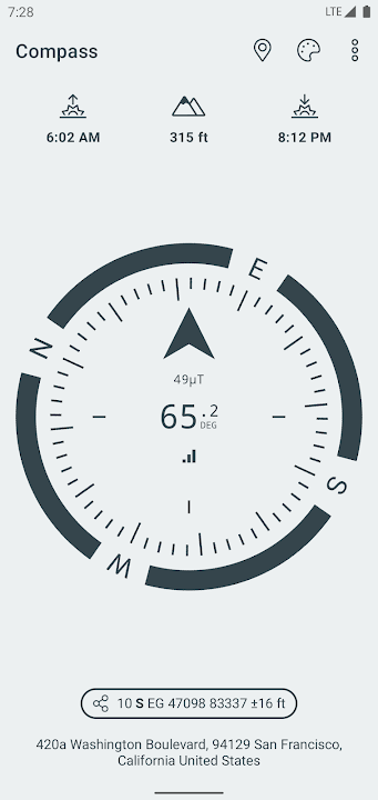 一个简单易用的指南针,用于检索有关您当前位置的有用信息,例如真正的地理北方和真正的海拔高度。
