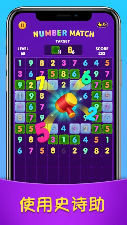 我们设计了数千个数字匹配谜题供您攻克。不同的谜题有不同的级别目标。关卡目标由草、百合、粘液和魔法帽等多种元素组成。与经典的数字匹配游戏(如numberzilla和number match)不同,只要达到目标,您就会获胜,而不是清除棋盘。Number Match: Ten Crush Puzzle是一款非常容易学习的数学拼图。合并数字以清除棋盘上的元素,您就可以享受这款免费的数字游戏。