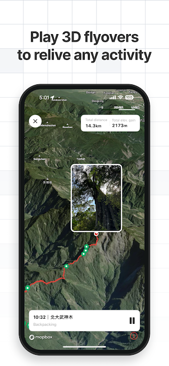 Revisit your journey through immersive 3D flyovers and feel the joy of your accomplishments.