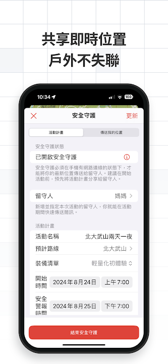自動與親友或留守人分享即時位置,逾時發送警報,安全更有保障。