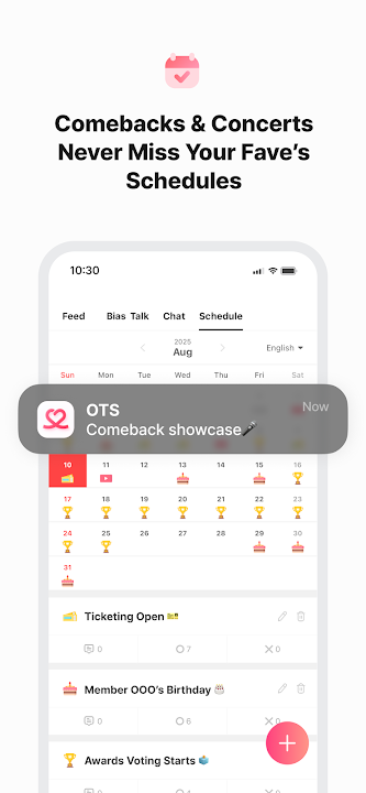 ▶ Stay updated on comebacks, concerts, fan meetings, music shows, and award ceremonies.