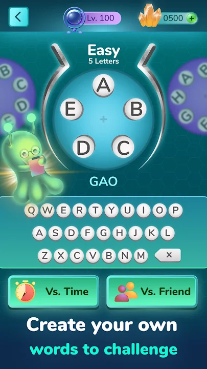 該遊戲具有三種令人興奮的模式,以保持樂趣和大腦訓練。在職業模式中,玩家可以通過解決填字遊戲來解鎖行星和系統。競爭模式允許玩家挑戰朋友決鬥解決填字遊戲 🔥,並獲得解鎖禮物 🎁 連勝和擊敗最高分 🥇 的獎勵。在每日單詞挑戰模式中,玩家可以幫助 Alioboi 👽 通過連接字母和解決單詞來收集他的朋友,以解鎖獨特的里程碑禮物 🎁 充滿關於宇宙的奇蹟和事實✨。
