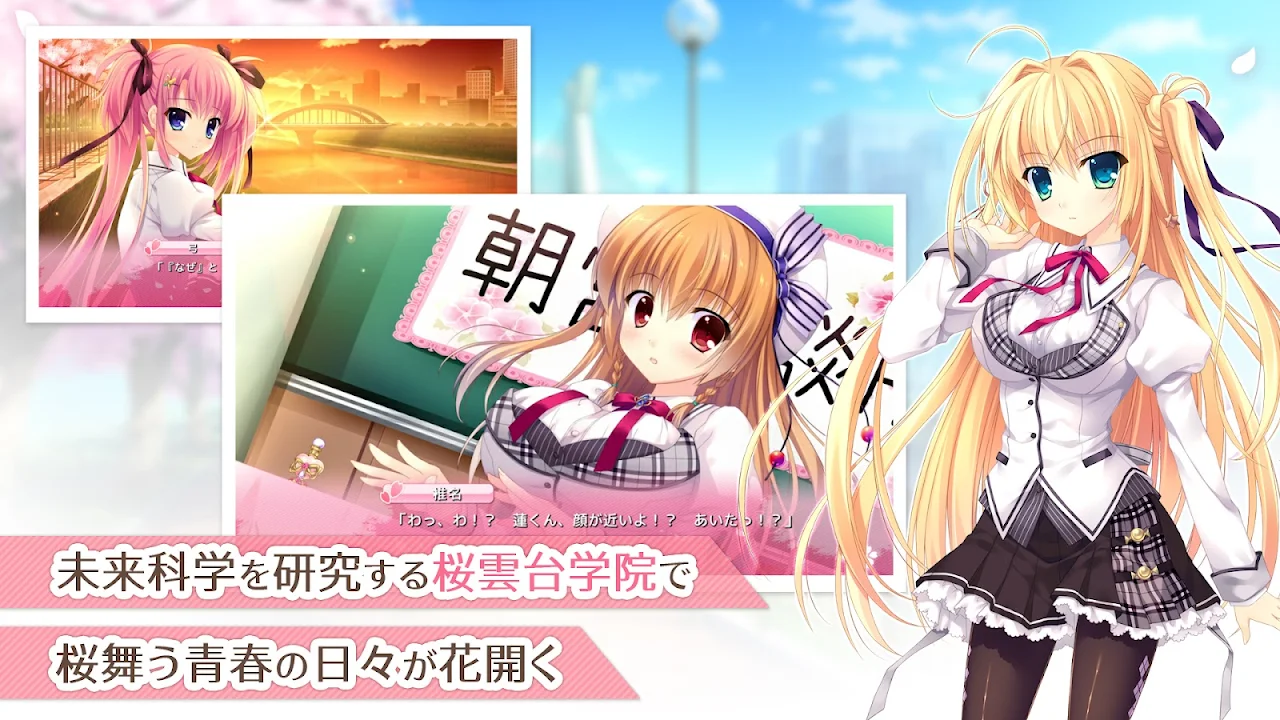 一款全语音校园恋爱冒险游戏,爱上5位美丽女主角。利用女主角所拥有的未来科学之力,向学校最高荣誉ALIA发起进攻!