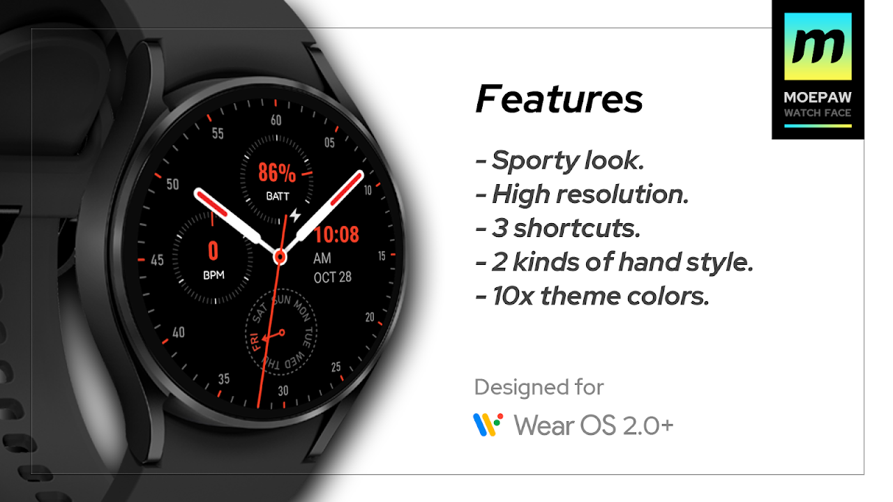- 此錶盤專為在 Watch OS 2.0(API 28+) 及更高版本上運行的智能手錶而設計。