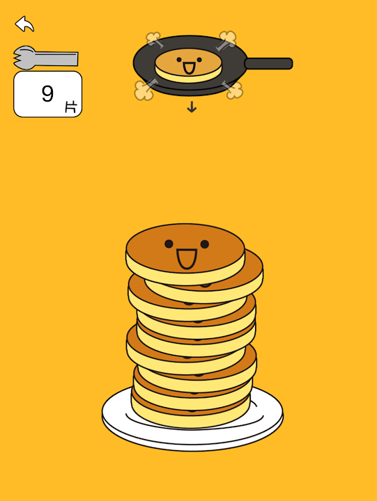 在这个游戏中,您可以尝试在菜肴上尽可能多地堆叠。 煎饼数量没有限制。 更新您录制的记录或某人的记录是一项挑战性的。 通过千种试验和错误,您将更新您的记录! 例如,您可以用两行堆叠薄煎饼。 使用这种技术,您可以轻松堆叠100个煎饼。 在一开始,让我们下载它!