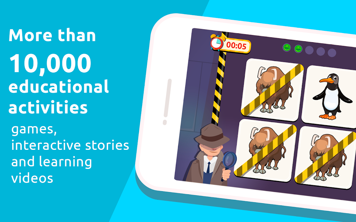✔ More than 10,000 activities in educational games, videos and interactive stories for childrenwithin one app, monthly updated.
