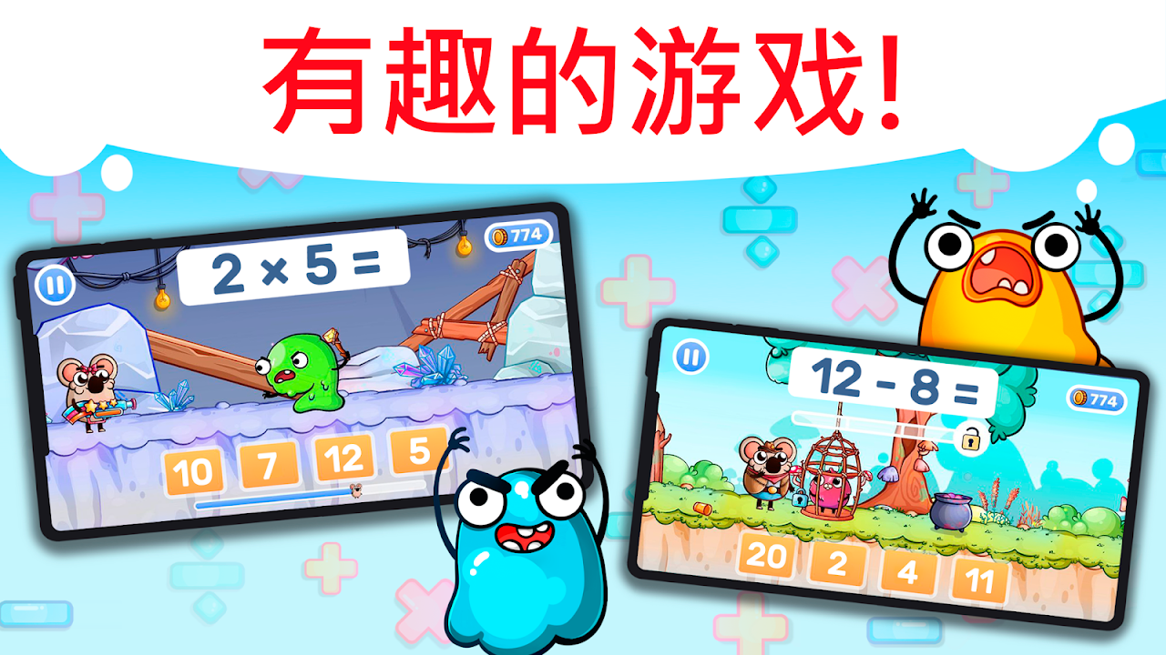 我们认为与粘液怪物战斗是一种比记忆卡或小测验应用程序更有趣、更吸引的日常算术练习方式。从一、二年级一直到五年级的孩子们都将享受在“趣味数学”教练的指导下练习心算的乐趣!
