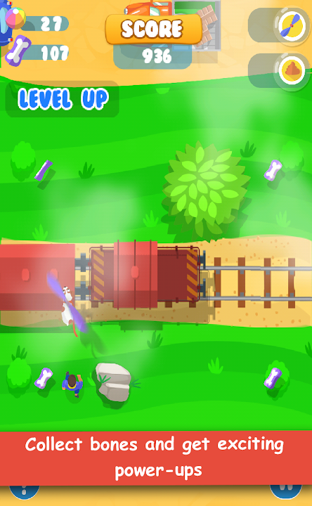 Run along an endless path packed with speeding cars, monstrous trucks, lingering bullock carts and roaming cows, timing your sprint to avoid the train and the angry bulldog waiting to leap out from ambush. Collect balls and bones along the way and use exciting power-ups and summon the Doggie Copter to fly out of a tight spot.