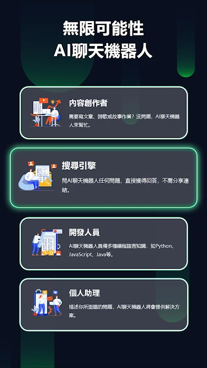 介紹最新、最智能的聊天方式——由先進的 GPT-3 技術驅動的手機應用程式。這個應用程式讓您與 AI 聊天機器人進行互動,為您提供深入而準確的答案。無論您想了解某個特定的主題、需要某個情況的建議或只是想隨便聊聊,這個應用程式都能滿足您的需求。