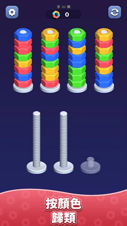 不花一分錢,享受數小時的螺帽分類樂趣,這款刺激的顏色益智遊戲等你來挑戰!