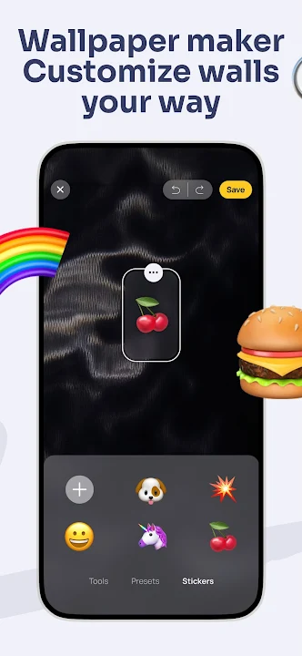 • 內建桌布編輯器 – 提供裁切、濾鏡、貼紙和文字工具。