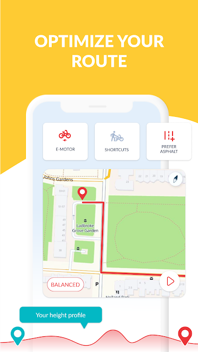 • Various routing options adapted to your bike type (city bike, mountain bike, road bike, e-bike)