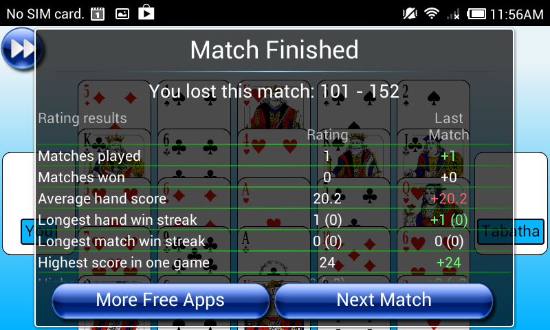 所有牌都摆放好后,桌面将按标准克里比奇牌计分。您获得行分,而您的对手获得列分: