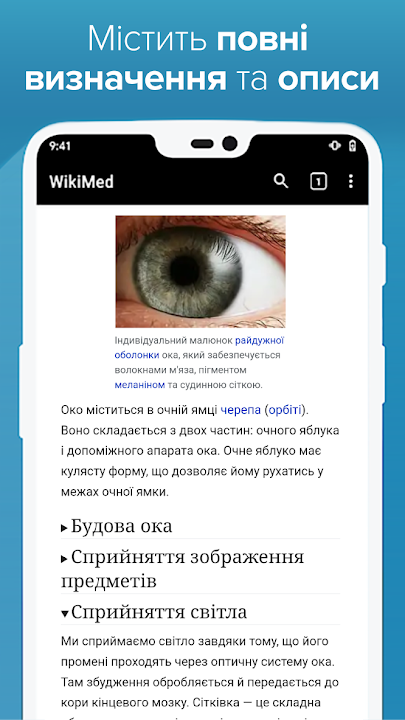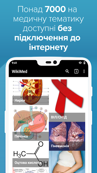 With over 7,000 medical-related articles, WikiMed is the largest and most comprehensive collection of health-related articles available in the Ukrainian language. It contains information on diseases, drugs, anatomy and sanitation from the famous free encyclopedia Wikipedia.