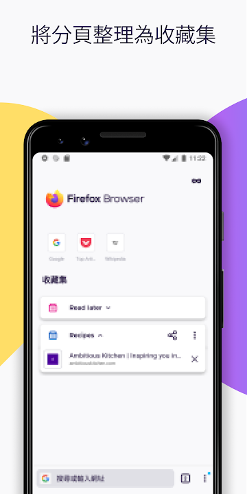 • 主畫面小工具:在手機主畫面直接用 Firefox 搜尋。