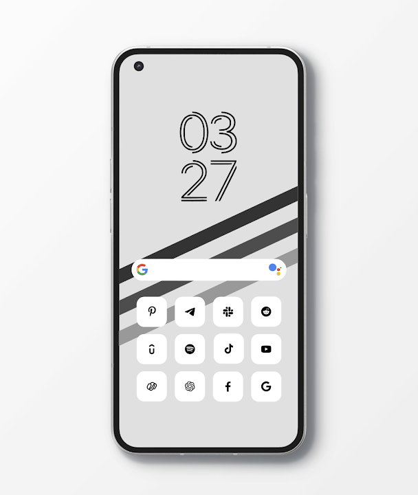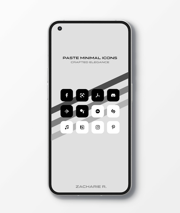 粘贴最小图标包 - 圆角方形图标。与我们支持的任何启动器集成。为您的主屏幕带来优雅和个性化的氛围。让自己沉浸在简约的黑白图标中,创造精致的体验。