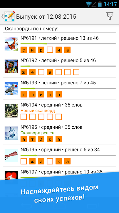 每天都有新刊发行!在每一期中,您将找到10个免费的scanword!