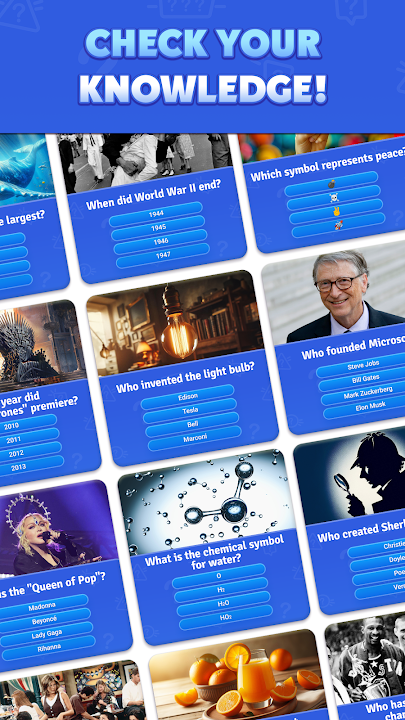 走进《Trivia Quiz: General Knowledge》的世界,每个答案都会开启新的发现,你的智慧和才智将不断接受考验!这款应用提供令人振奋的体验,充满了各种琐事问题和谜语,挑战并扩展你的常识。无论你是琐事新手还是经验丰富的专家,《Trivia Quiz: General Knowledge》都是你的完美选择!探索一系列引人入胜的主题,包括引人入胜的问题和令人费解的谜语,涵盖从古代文明到现代奇迹的各种主题。无论你是经验丰富的琐事高手还是新手,都可以踏上无尽的探索之旅,享受无限乐趣。