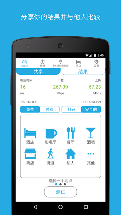 SpeedSpot将帮助你测试因特网的速度并助你找到快速的Wi-Fi热点。