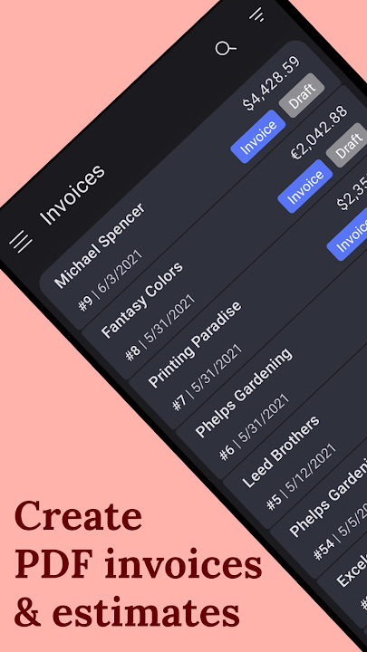 • Quickly create PDF invoices, quotes or estimates & send them to your clients