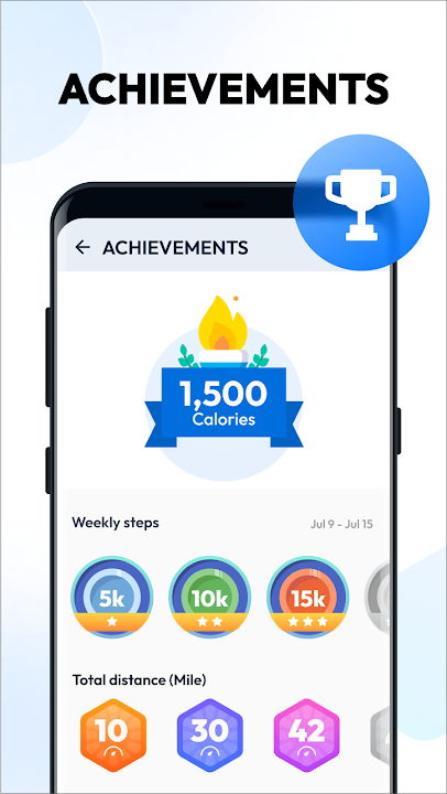 You can set daily step goals. Consecutively achieve your goal for 2 days or more will start a streak. You can easily check your streak statistics chart to stay motivated.