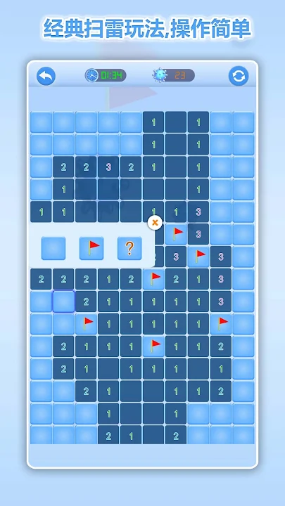 标记功能:如果你确信某个位置存在地雷,可以长按该方格,放置旗帜来标记它。如果你不确定某个位置是否有地雷,也可以放置问号标记,稍后再来确认。这种标记功能帮助你清晰地整理信息,避免错误判断。