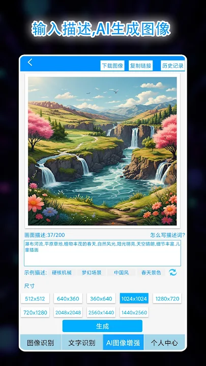 AI创意作画:AI作画功能不仅精准而且具有创新性,根据用户输入的文字描述,生成与之相符的艺术图像,带来全新的创作体验。