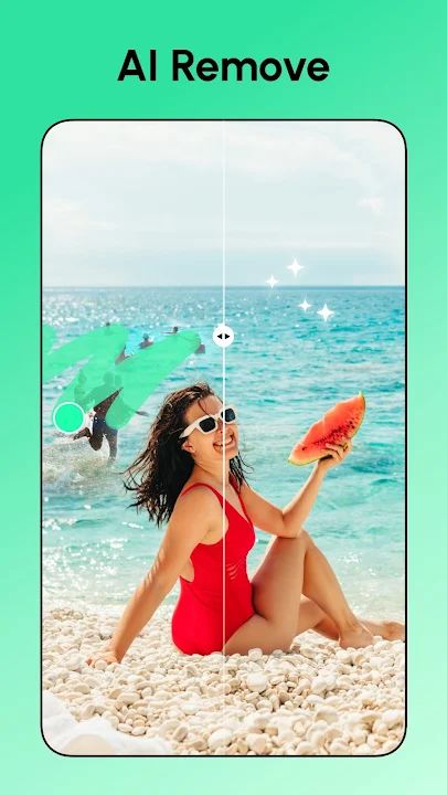 One tap to remove unwanted objects naturally — logo, people, text, blemish, sticker, watermark… This photo editor and object remover gives your photos a flawless finish in seconds. An unwanted object, no matter how tiny, may completely spoil your photo. But with this super easy & time-saving tool, all photos will look studio-perfect effortlessly — now enhanced with pixel-level cut to ensure perfect edges and seamless blends.