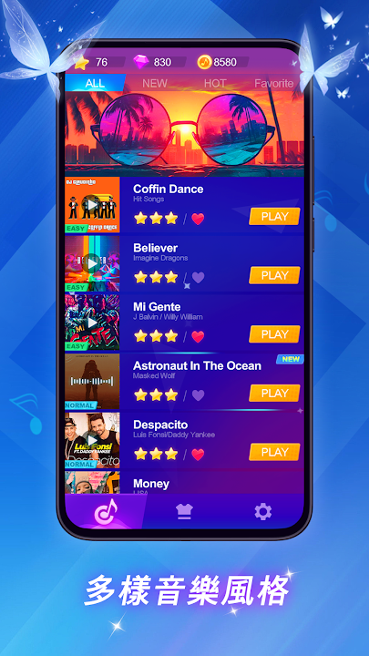 • 通過完成歌曲和獲得星星來解鎖獨特皮膚和新歌曲。