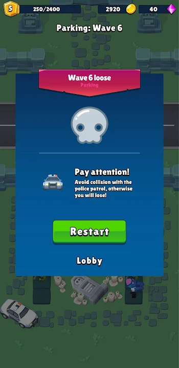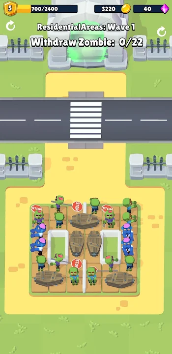 Swipe to move Zombies. Take the Zombies out of the parking lot to win. Avoid collision with the police patrol, otherwise you will lose. Your Zombies are much more effective at destroying the enemy if they attack in a crowd. In battles with a serious opponent, first of all, bring the Zombies with the highest HP into battle.