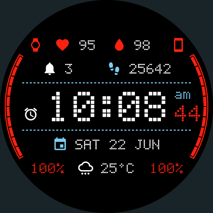 LED v2 watch face is the perfect companion for your Wear OS smartwatch. With its simple and functional design, it resembles a classic LED screen that shows the time and other useful information. Whether you're at work, at home, or on the go, this watch face provides everything you need at a glance.