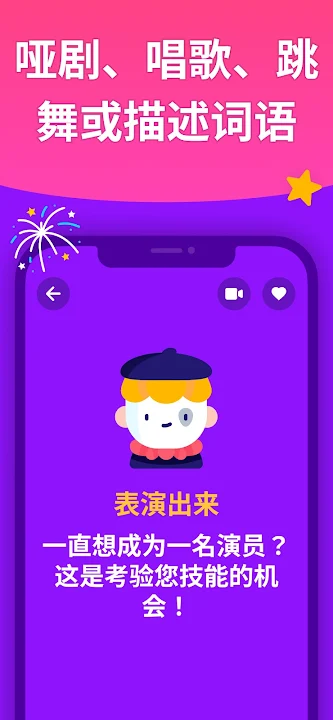 只需将手机放在你的前额上,然后通过观看你的朋友模仿、描述和模仿你能想到的各种谜题来猜测卡片上的谜题。