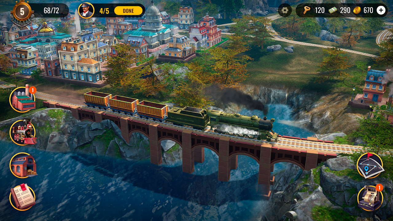建造铁路不仅仅是从A点到点的轨道。这是一项战略任务,要求您考虑地形。您需要仔细计划扩展,利用隧道,桥梁和电台,才能使您的优势。每种新的铁路连接都会提高您的收入并扩大您的帝国,使您可以投资更多的火车,电台和升级。