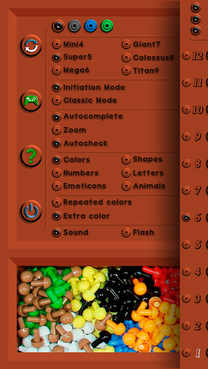 • 自動完成:可用於啟動級別。當一種顏色處於正確位置時,移動到下一行時,它會自動出現