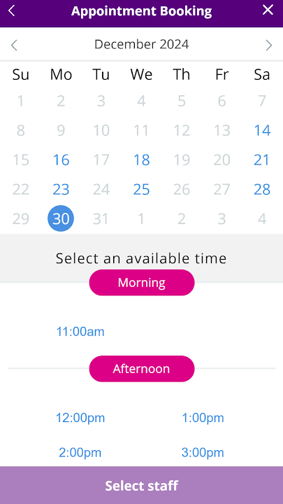 全面的日程管理:通过易于使用的日历查看、修改或计划您的每周预订。