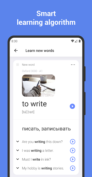ReWord is a highly effective foreign language learning app. It is your best tool to learn English and improve your vocabulary. Did you know you can learn languages just taking 5-10 minutes a day? With our interval system, your English lessons will reach a new level. And will give you greater results, of course!