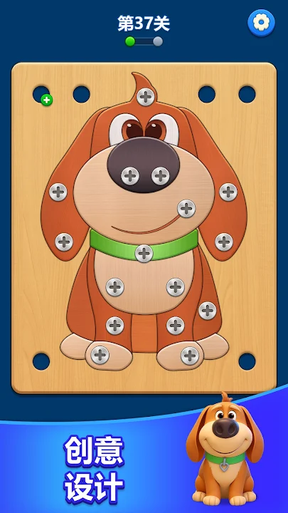 💡 响应式屏幕按钮确保顺畅的木质螺丝游戏体验。