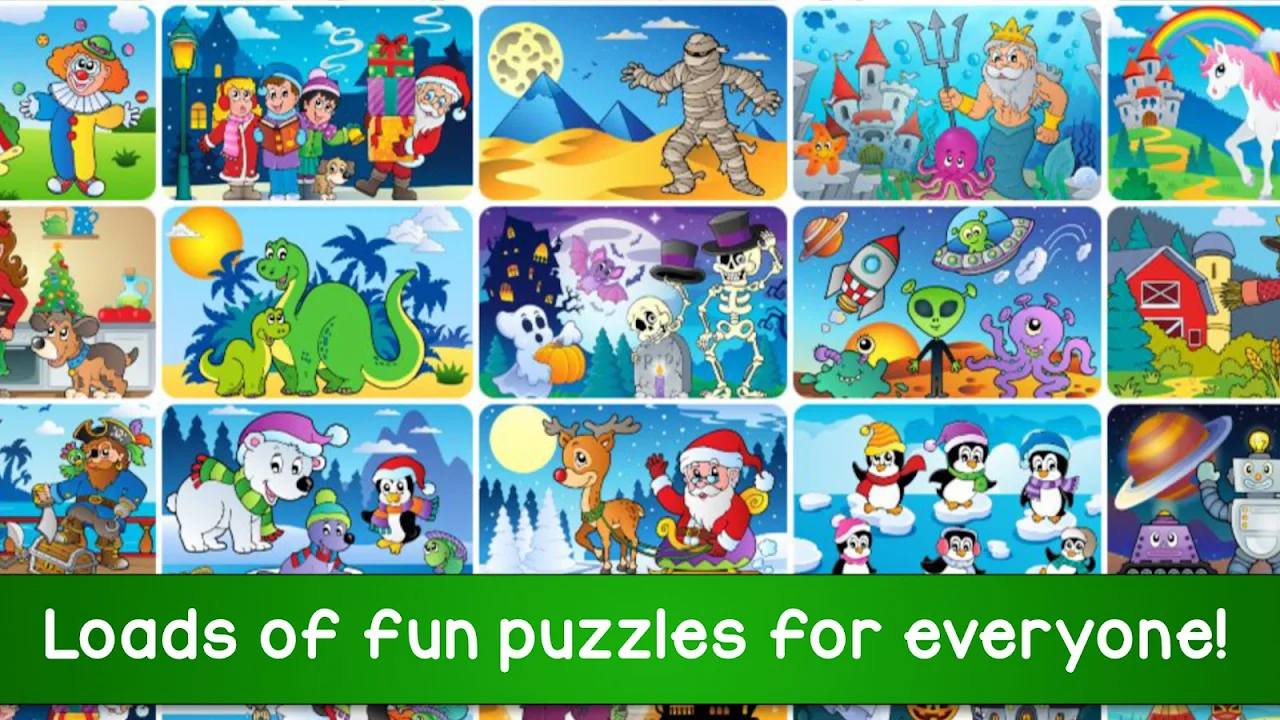These relaxing puzzles feature beautiful pictures and a fun reward when the image is completed. The kids puzzles include unicorns, dragons, dinosaurs and other fun scenes, while the rewards include balloons, fruits, snowflakes and many more surprises!