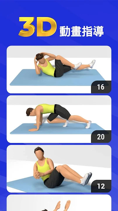 「30 天腹肌挑戰」提供系統性的 30 天鍛鍊計畫,並分為 3 個等級,不論是初學者或專業人士、男性或女性都適合使用。就像您的私人健身教練一樣,我們會引導您一步步燃燒腹部脂肪,打造六塊腹肌。