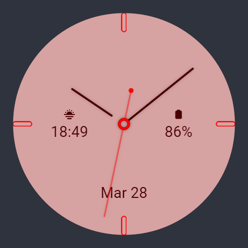 Grace 是一款乾淨優雅的類比錶盤,適用於 Wear OS,專為欣賞簡約與現代風格的人士而設計。它具有四種醒目的顏色主題(紅色、綠色、藍色和黑色),可適應您的風格和偏好。時針、分針和流暢的掃秒針確保精準流暢的體驗。三種可自訂的複雜功能可讓您顯示最重要的訊息,例如天氣、電池百分比或活動數據。非常適合喜歡在美觀和可用性之間取得平衡的人。
