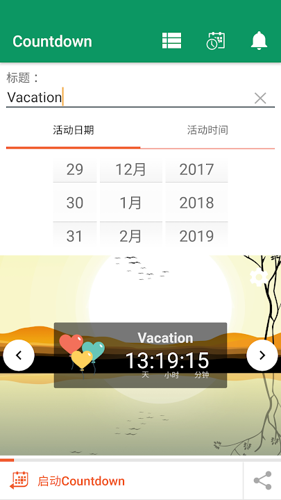 怎么用? 很容易! 您开始用部件之后,输入事件的日期和名字。