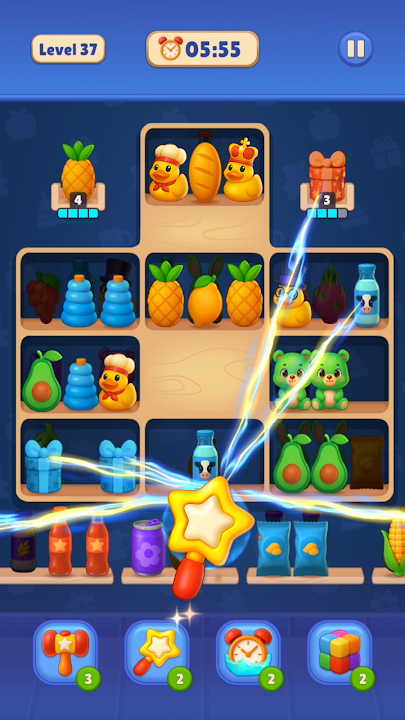 摆放商品,合并三个相同的商品以发现新商品,并在这款轻松愉悦的游戏中填满货架。